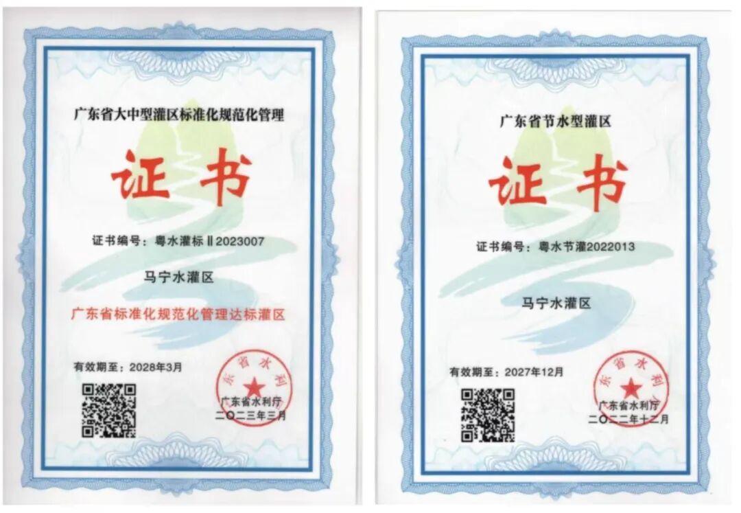 图为马宁水灌区获广东省节水型灌区、广东省标准化规范化管理达标灌区